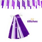 Es elaborado con papel china de colores morado y blanco (3m de largo).