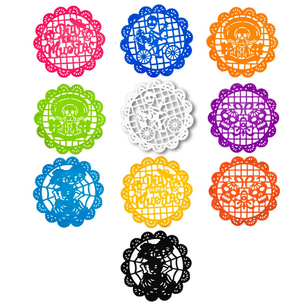 Decora con alegría y tradición con 100 carpetas redondas de papel china en 10 colores vibrantes. ¡Celebra el Día de Muertos con estilo!