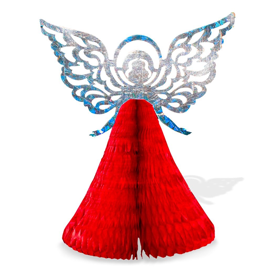 Este ángel artesanal navideño combina una base de papel china tipo panal con alas y detalles superiores en cartulina metálica plateada, logrando un contraste elegante y tradicional. Elemento ideal para centros de mesa, repisas, recibidores o decoraciones temáticas. La mezcla de textura suave y brillo metálico aporta un toque navideño cálido, delicado y lleno de encanto.
