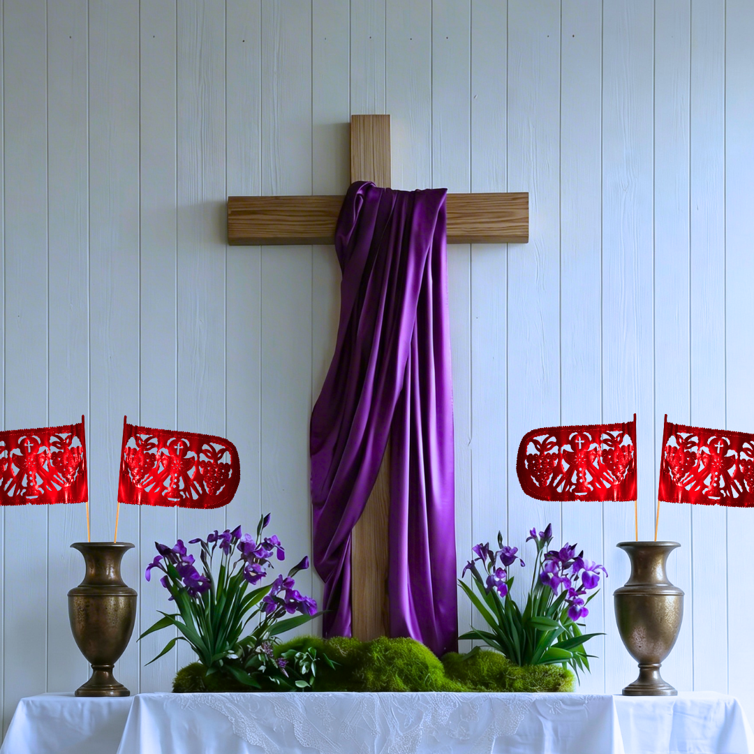 Ideal para iglesias, eventos, altares o celebraciones de temporada, esta banderita es ese detalle que eleva cualquier decoración y transmite un ambiente más significativo.