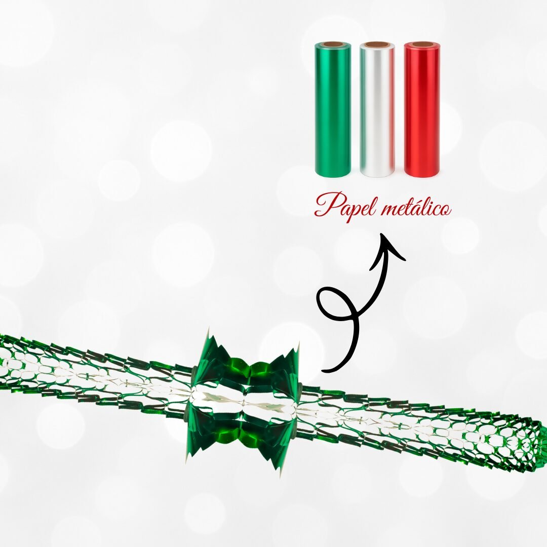 Nuestra Cadena de Barril Metálica Guadalupana es una pieza decorativa ideal para dar un toque especial a altares, entradas, fachadas o cualquier espacio exterior. Su diseño montable en forma de cilindro crea un efecto voluminoso y llamativo, combinado con colgantes de la Virgen de Guadalupe colocados de manera intercalada (uno sí y uno no). Está elaborada con papel metálico en tonos tricolor, lo que le da un brillo hermoso bajo la luz del sol. Es una cadena grande, vistosa y delicadamente trabajada, perfecta para celebraciones guadalupanas o decoraciones temáticas.