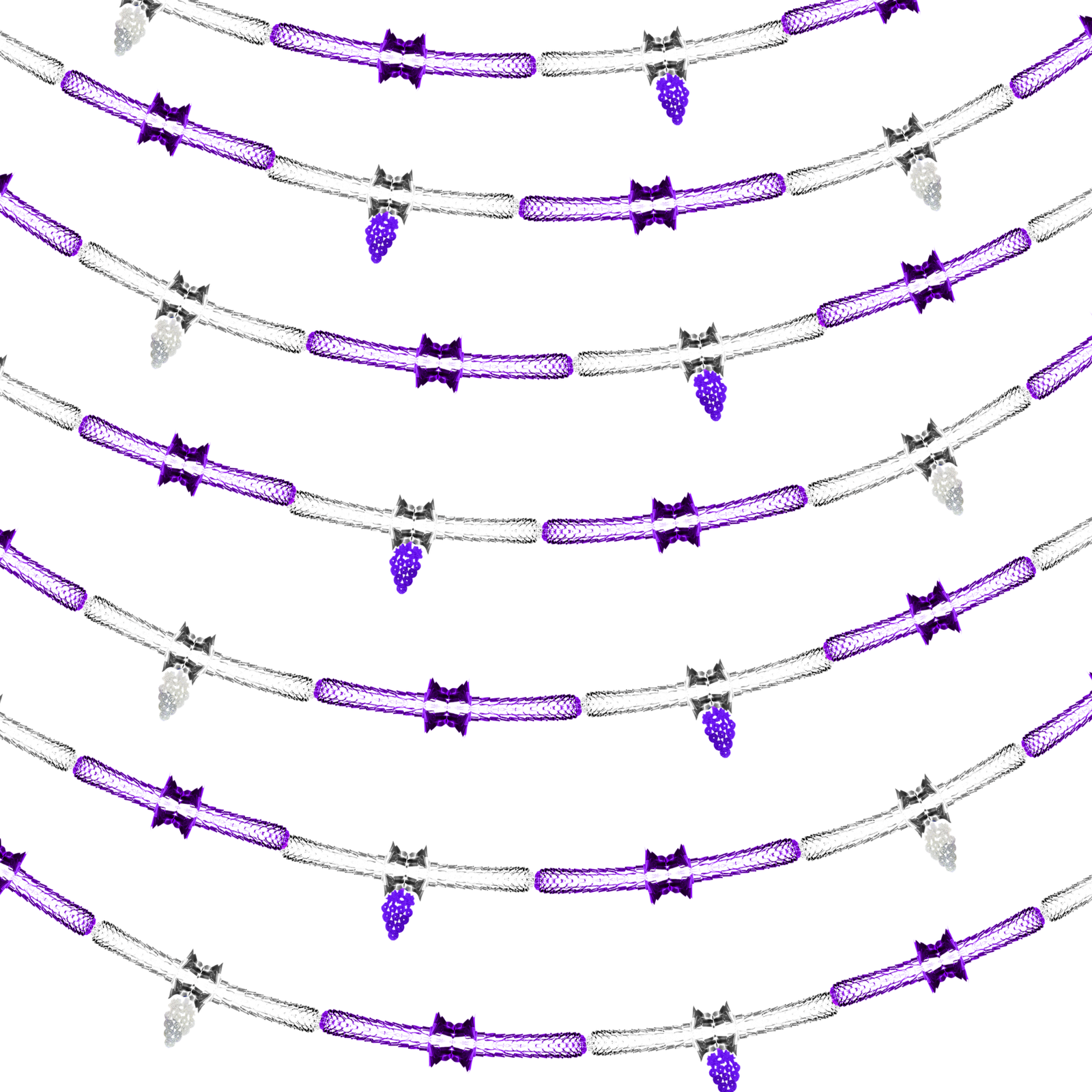 Cadena metálica plata y morado, con colgantes decorativos tipo barril. Ideal para ambientaciones de Semana Santa. Agrégala a tu pedido y prepara tu decoración.
