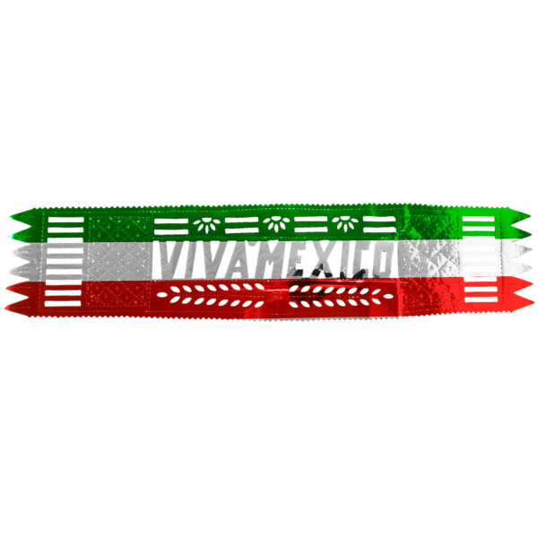 Cadena sencilla elaborada de manera artesanal con papel metálico en los colores patrios: verde, blanco y rojo. Su acabado brillante y su diseño tradicional la hacen ideal para decorar techos, paredes, entradas o cualquier espacio durante las fiestas mexicanas. Ligera, vistosa y fácil de instalar, es una opción decorativa que aporta alegría, color y orgullo nacional a cualquier celebración.