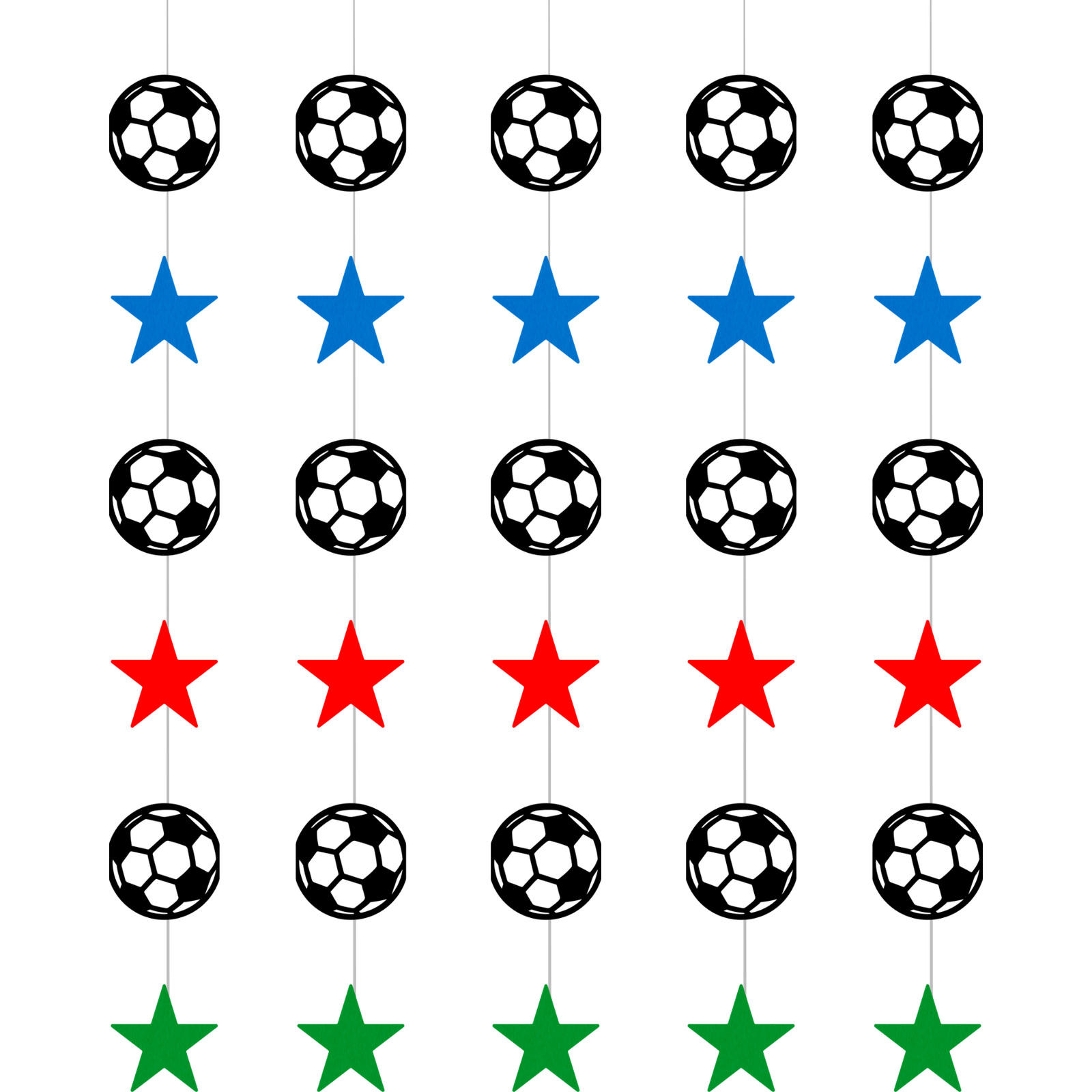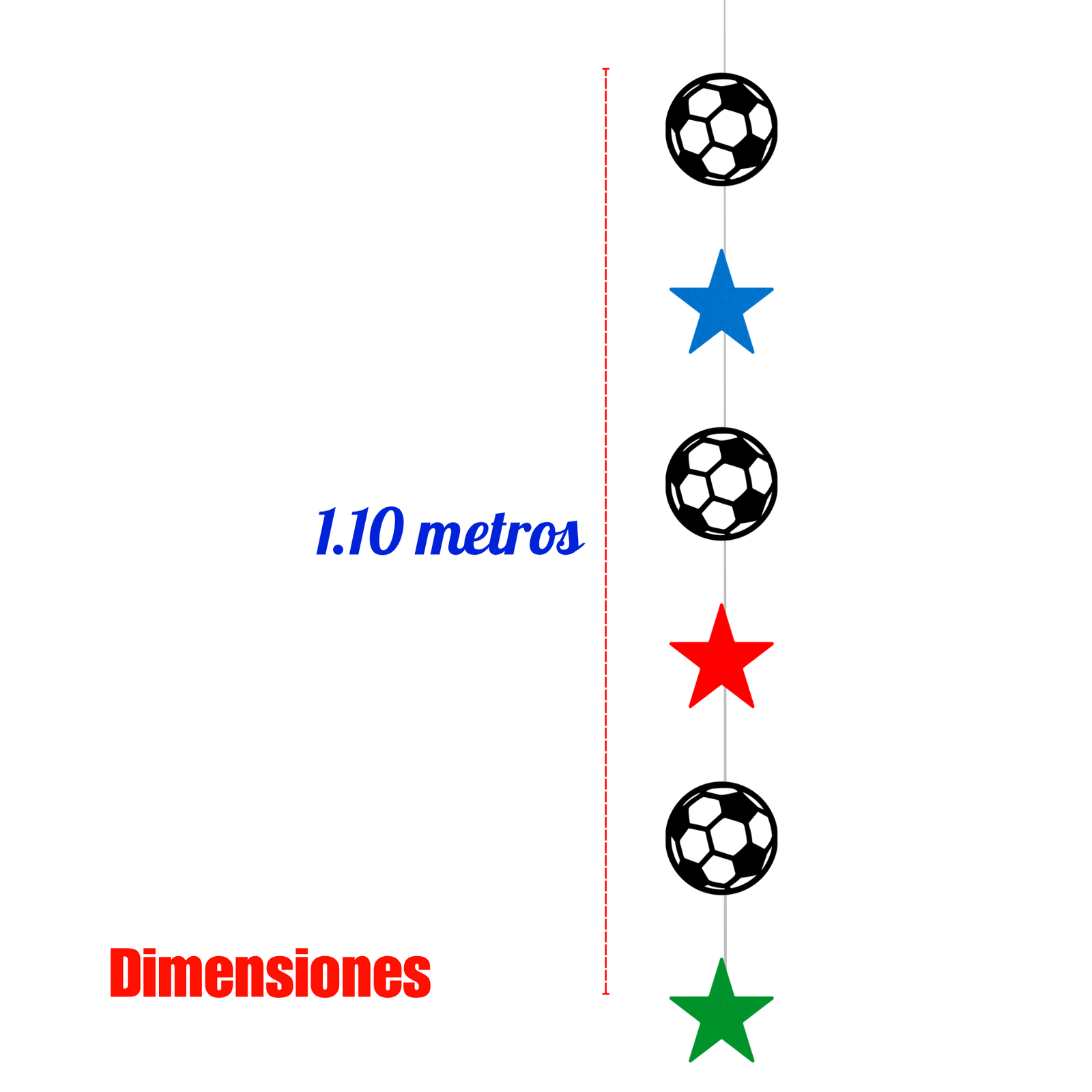Cada tira combina balones de fútbol con estrellas en colores vibrantes, creando una composición vertical que aporta dinamismo y movimiento. Al colocarlos en ventanas, paredes o entradas, generan un efecto visual envolvente que llena el ambiente de vida y conecta con la pasión del juego. Ideal para bares, restaurantes, reuniones en casa o eventos deportivos, este colgante convierte cualquier lugar en el punto perfecto para reunirse, disfrutar y celebrar cada jugada. Es ese detalle que hace que todo se sienta más completo, más inmersivo… más emocionante.