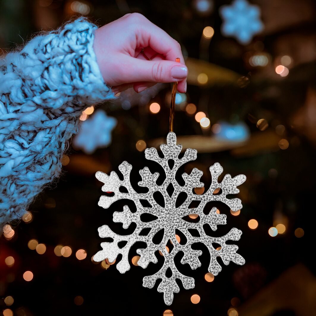 Decora tu espacio con copos metálicos individuales para un toque invernal y brillante. Elige tu color favorito y transforma tu ambiente. ¡Compra ahora!