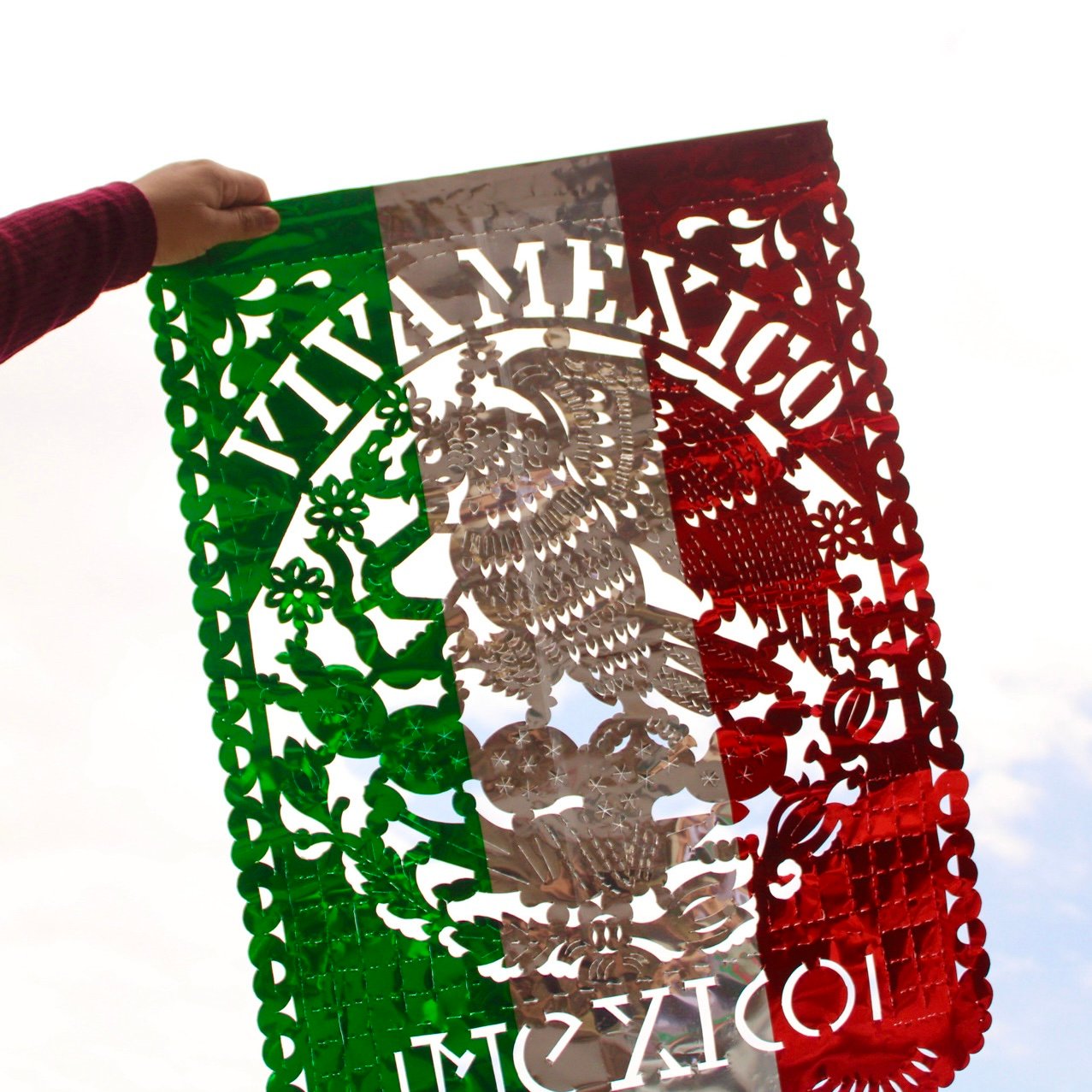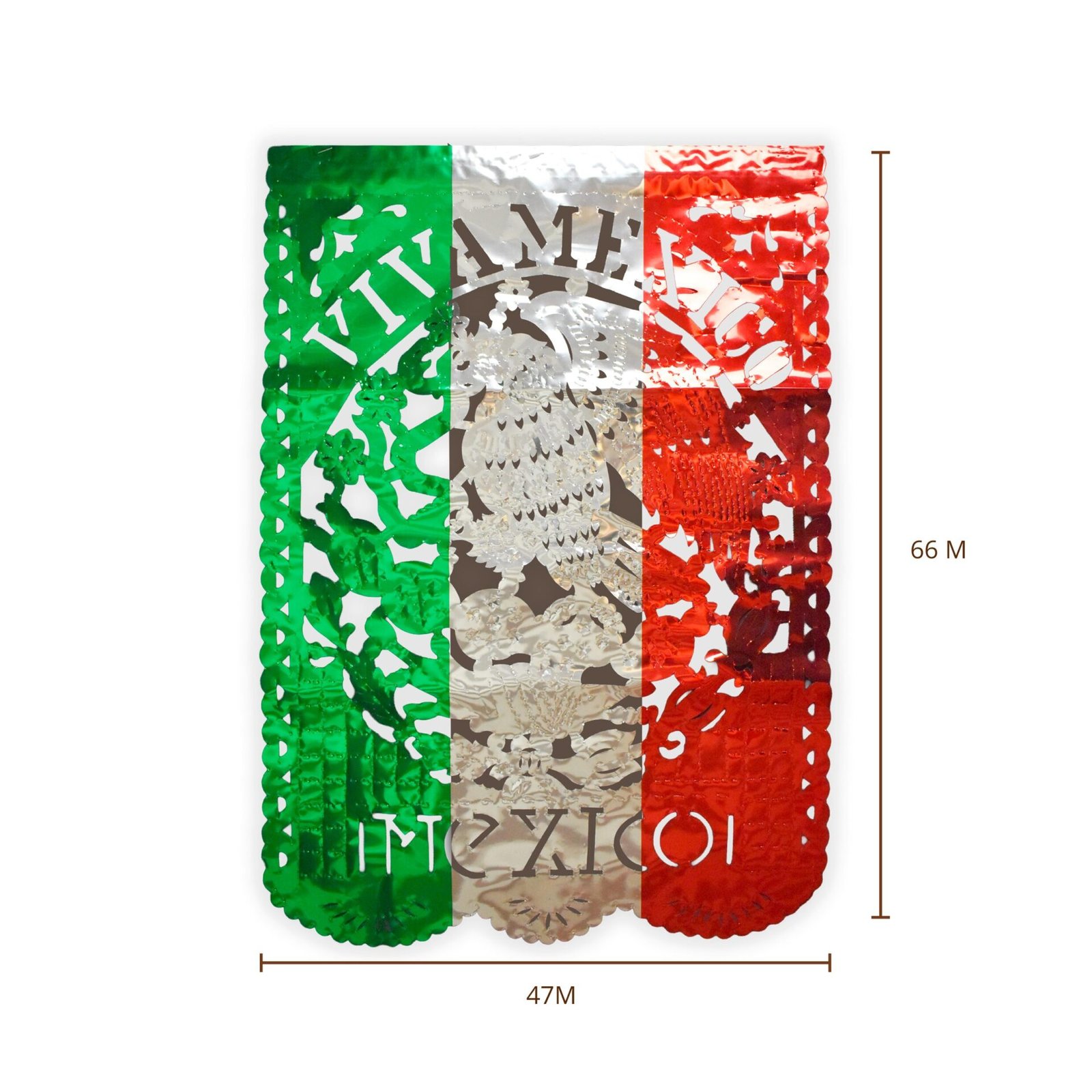 Este estandarte tricolor, elaborado artesanalmente con papel metálico en verde, blanco y rojo, es una pieza decorativa que destaca por su brillo, color y simbolismo. Al centro, incorpora el Escudo Nacional Mexicano y la leyenda “Viva México”, creando un diseño vibrante que celebra nuestras raíces. Perfecto para colgar en muros, ventanas, balcones o accesos durante las fiestas patrias.