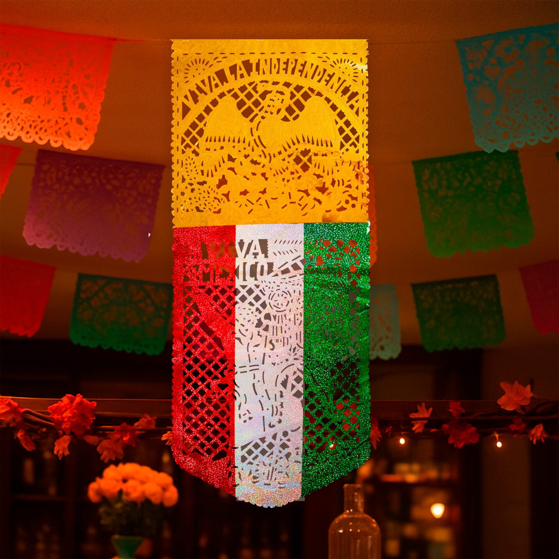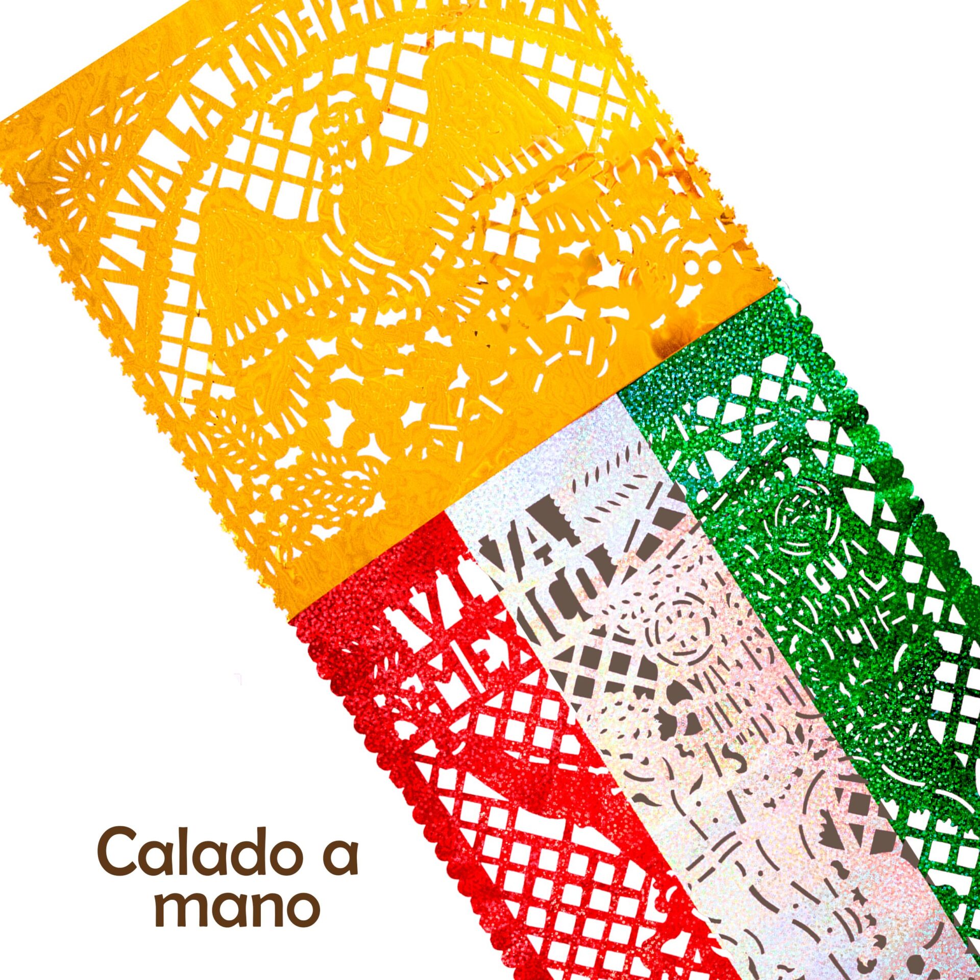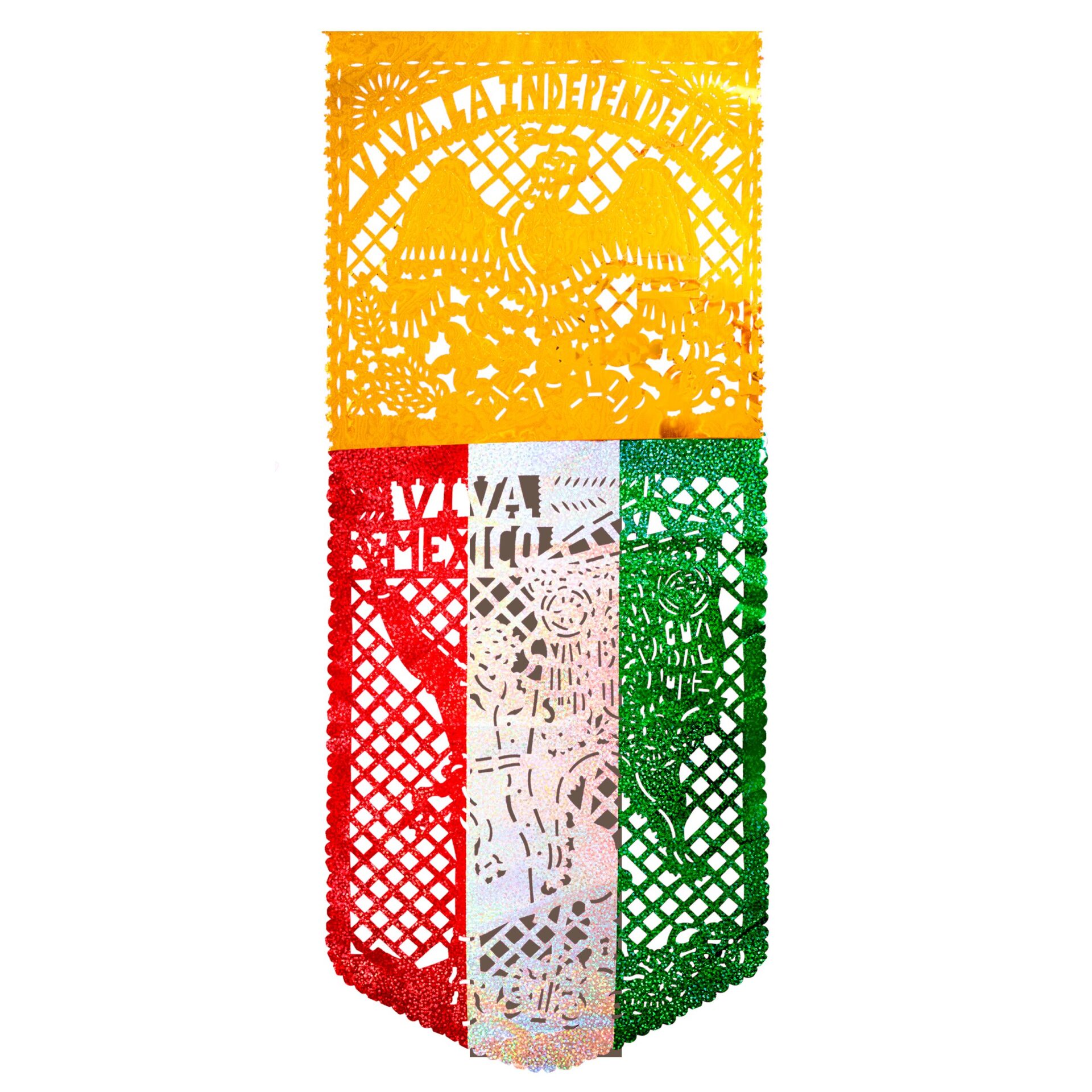 Estandarte Independencia artesanal en papel metálico. Brillante, colorido y perfecto para celebrar con espíritu patrio.