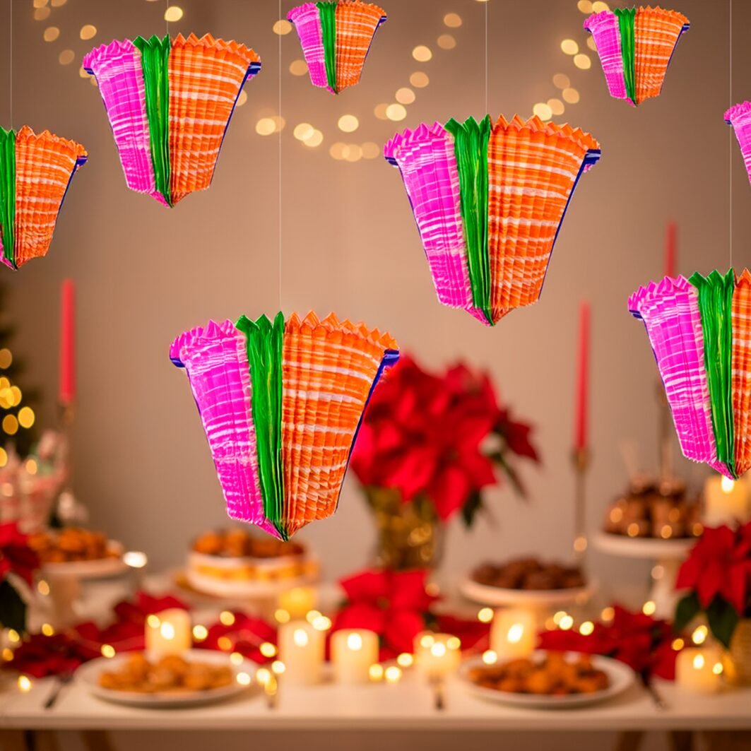 Aporta un estilo vibrante y tradicional a cualquier celebración gracias a sus colores intensos y su diseño plegable tipo pagoda. Elaborado en cartulina con detalles impresos que evocan decoración artesanal, es ligero, fácil de montar y perfecto para colgar en interiores, fiestas temáticas, eventos navideños o espacios que buscan un ambiente cálido y festivo. Su estructura plegable permite un almacenamiento práctico sin perder presencia visual al exhibirse.