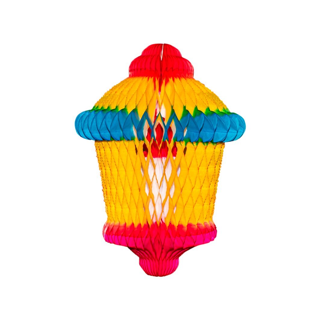 Farol decorativo multicolor N. 1 con diseño tipo vela, perfecto para colgar en posadas, fiestas navideñas y celebraciones tradicionales.