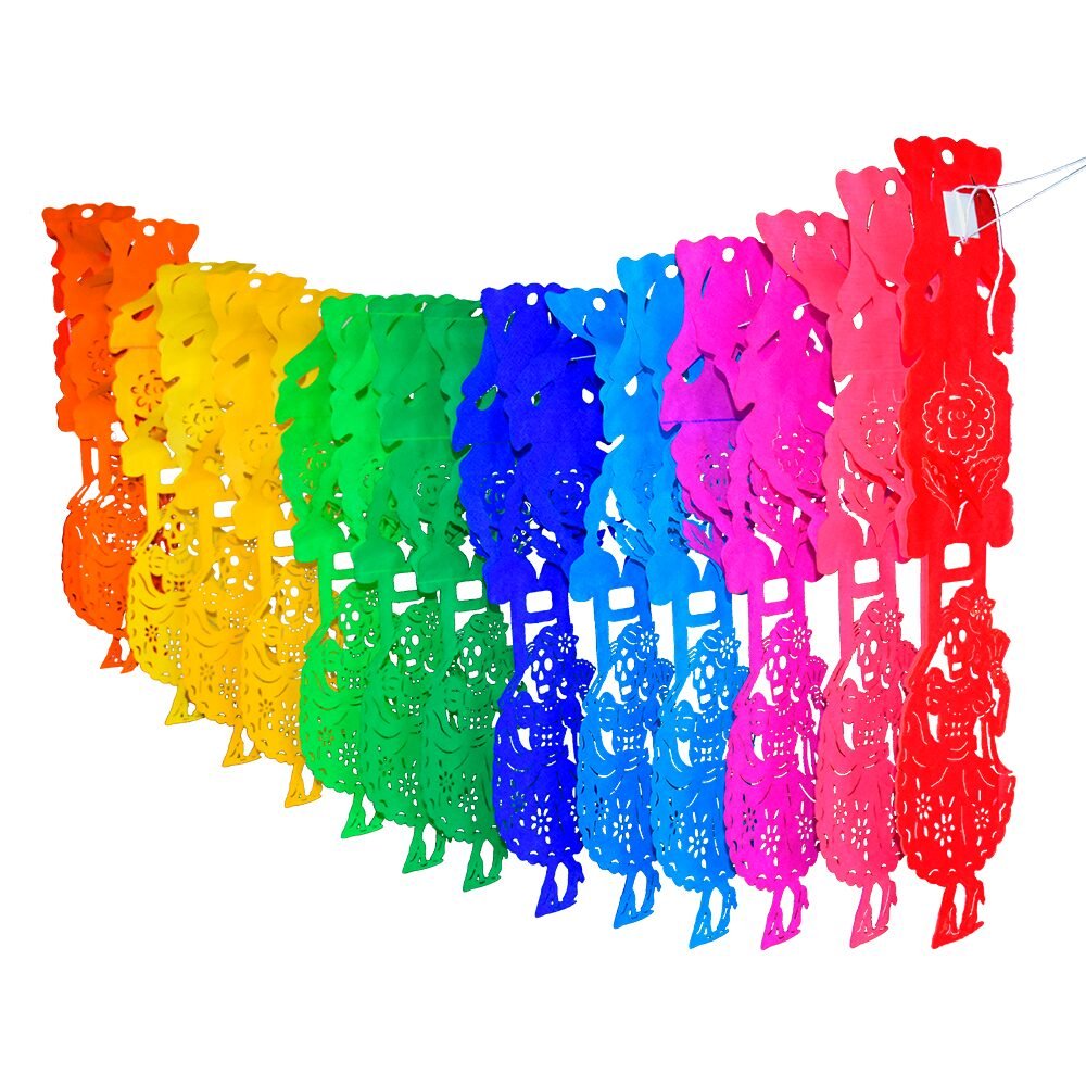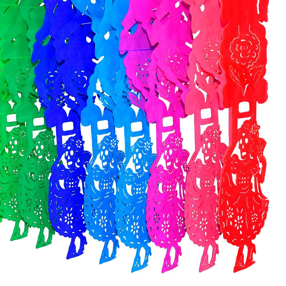 Decora con color y volumen en Día de Muertos con nuestro festón de catrina bailarina en papel china. ¡Llena tu espacio de tradición!