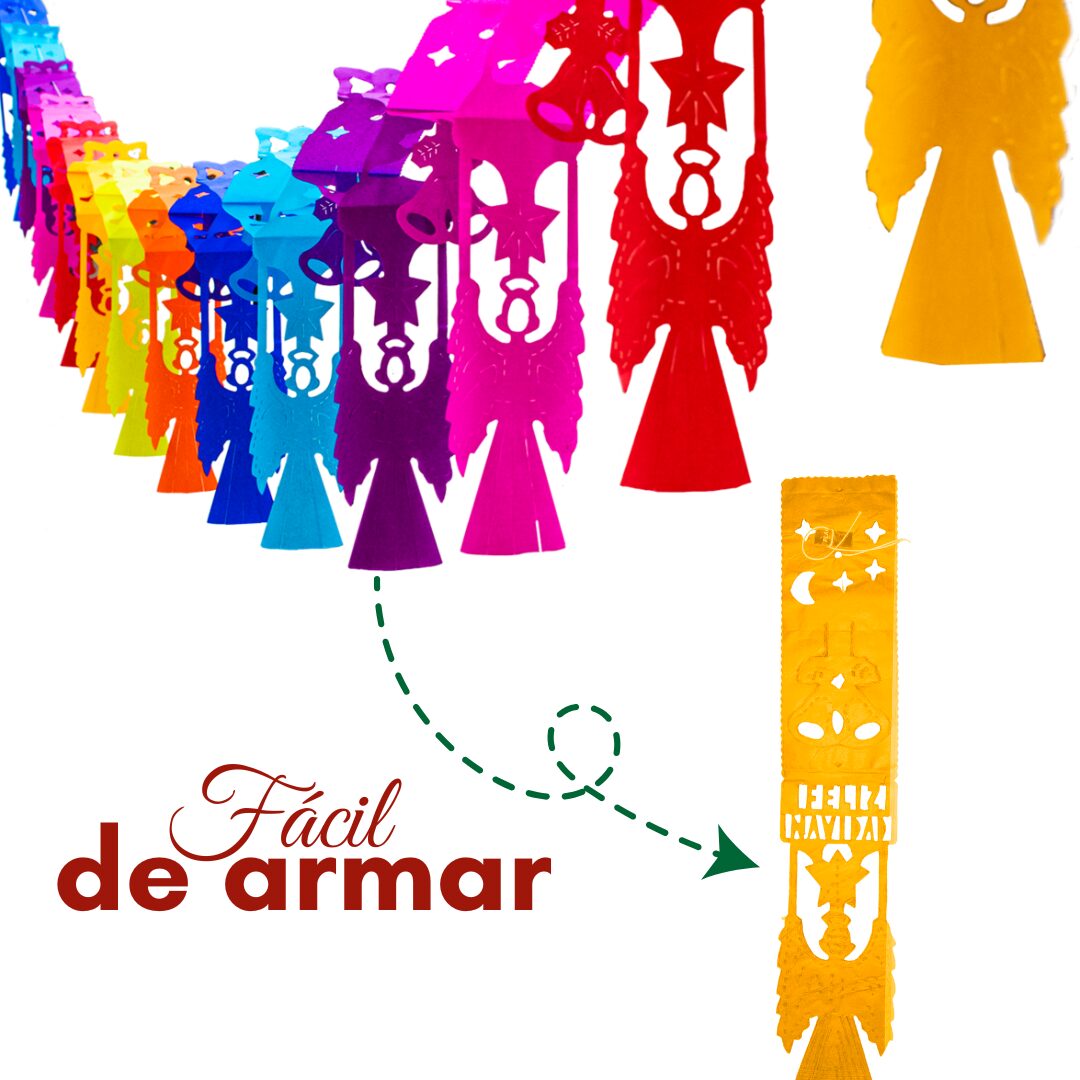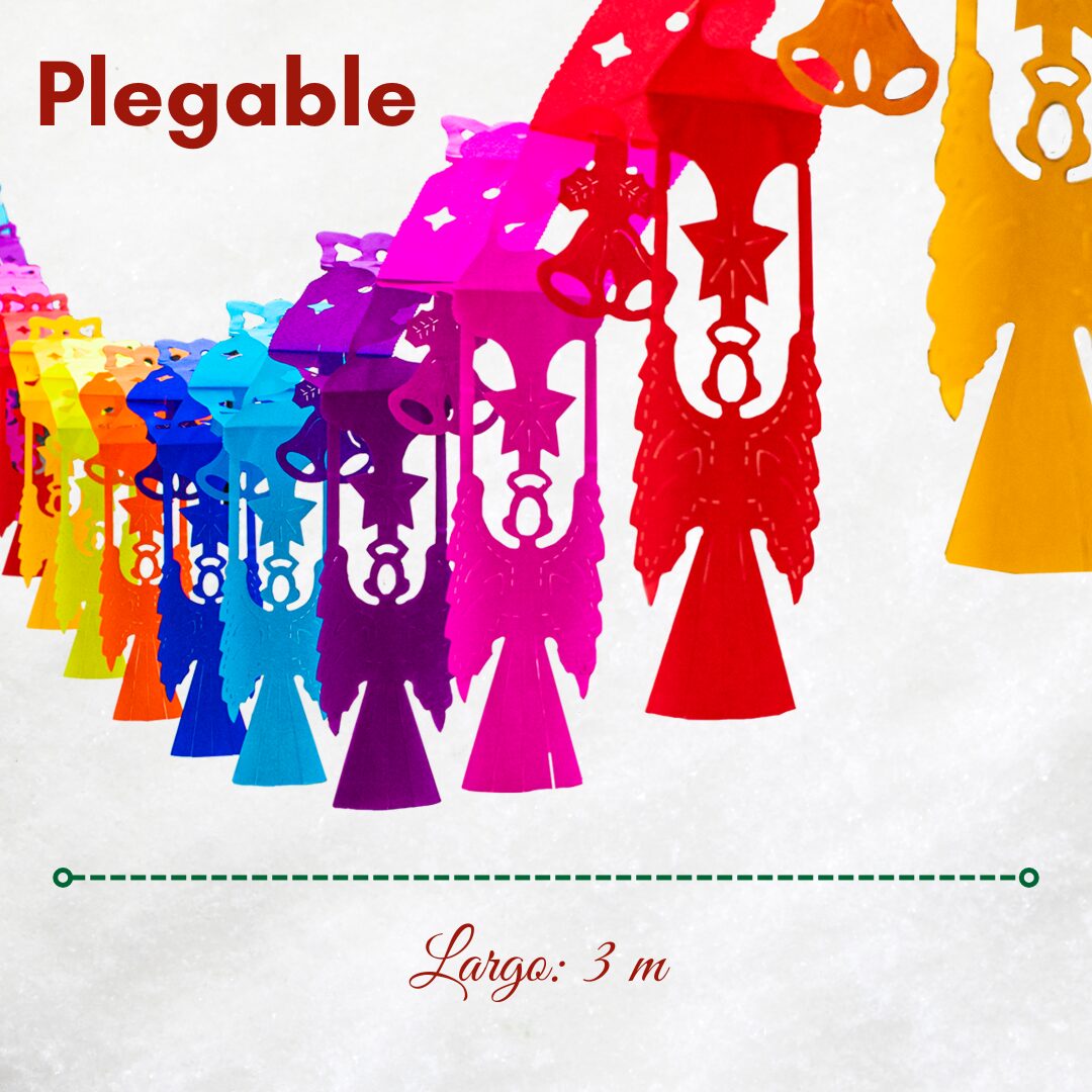 El Festón de Angelitos es una guirnalda artesanal desmontable hecha de papel china en colores vivos. Viene plegada y solo necesitas jalar el hilo para desplegarla y ajustarla al espacio que tengas, lo que la hace muy práctica para decorar cualquier rincón. Sus detalles de angelitos en multicolor le dan un toque tierno y festivo, ideal para eventos, altares, habitaciones o celebraciones especiales. Es ligera, fácil de colocar y perfecta para agregar un detalle delicado sin complicaciones.