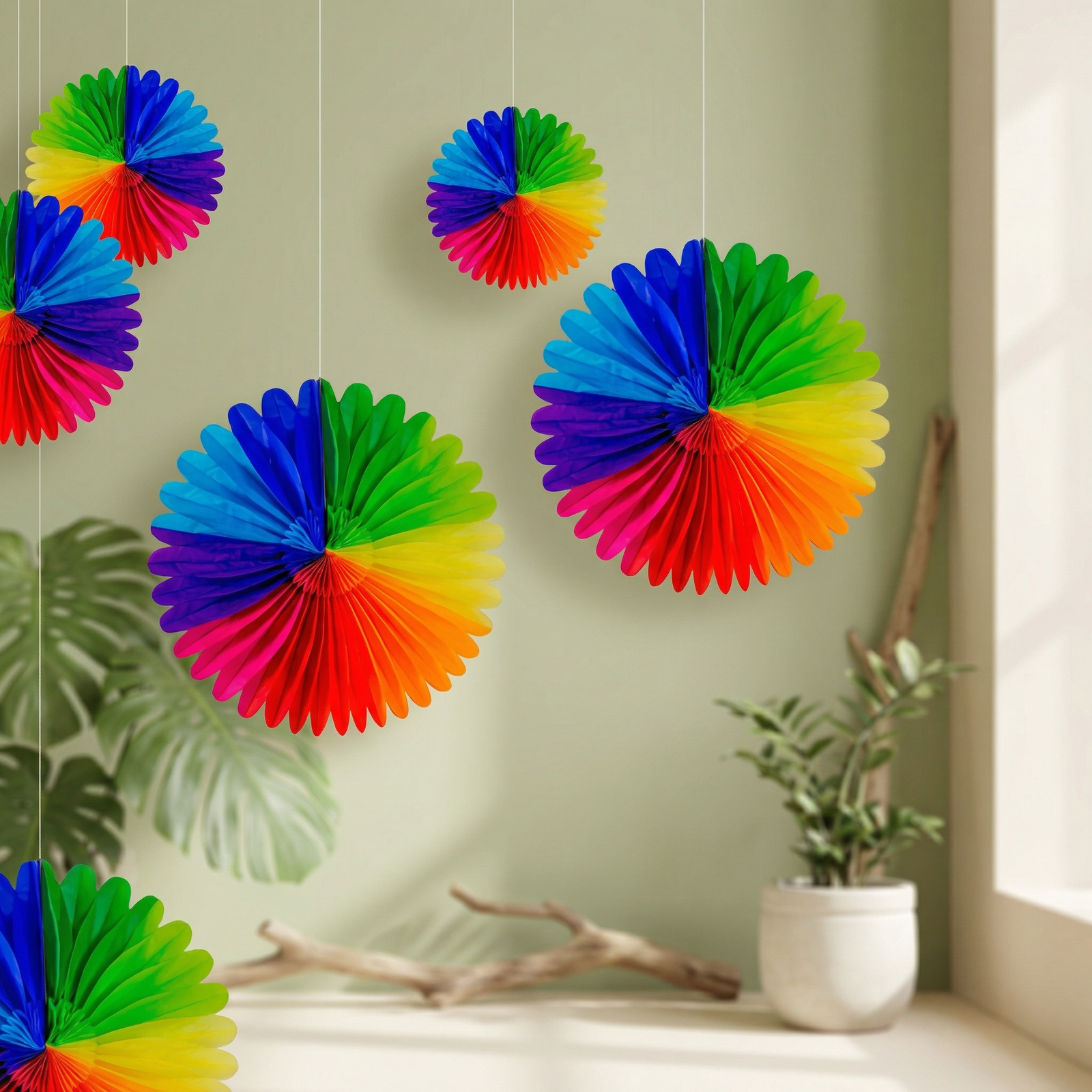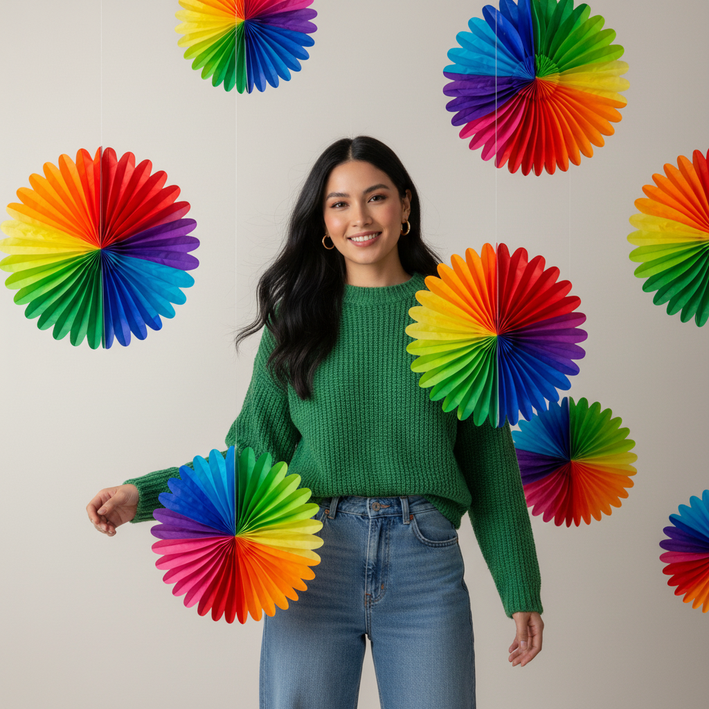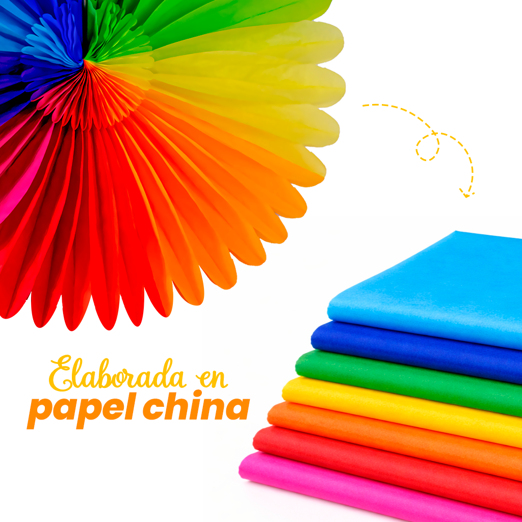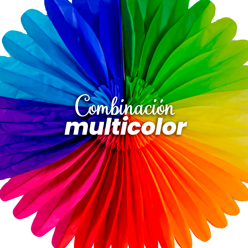 La Flor Multi de Papel es una decoración vibrante que aporta color, volumen y dinamismo a cualquier ambientación primaveral. Su diseño plegable tipo abanico crea un efecto visual llamativo con combinación multicolor en degradado, ideal para montajes en pared, fondos decorativos, mesas principales y celebraciones temáticas.