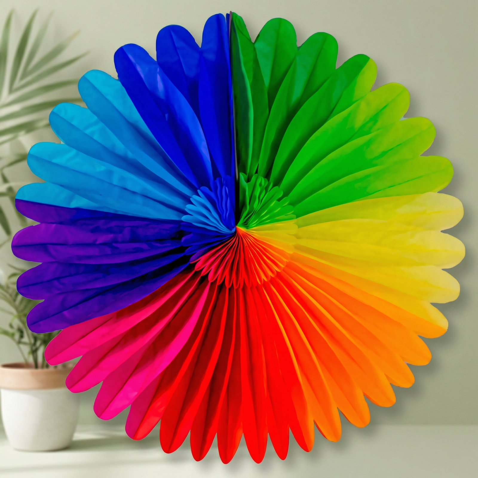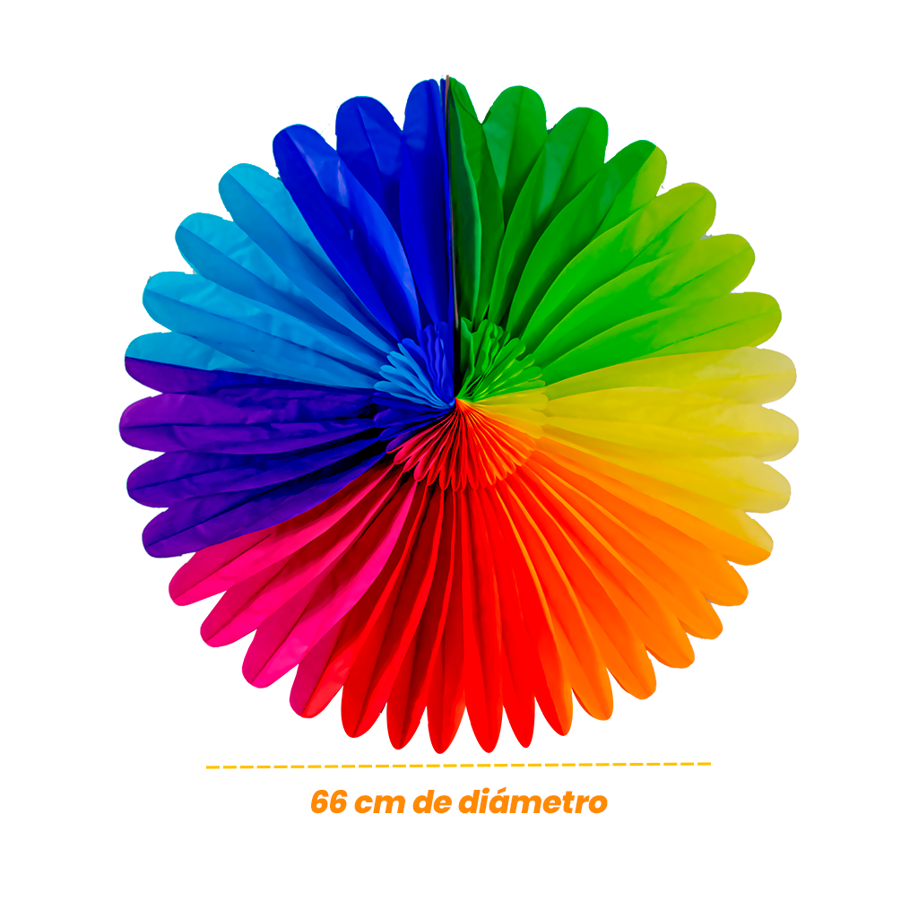 La Flor Multi de Papel es una decoración vibrante que aporta color, volumen y dinamismo a cualquier ambientación primaveral. Su diseño plegable tipo abanico crea un efecto visual llamativo con combinación multicolor en degradado, ideal para montajes en pared, fondos decorativos, mesas principales y celebraciones temáticas.