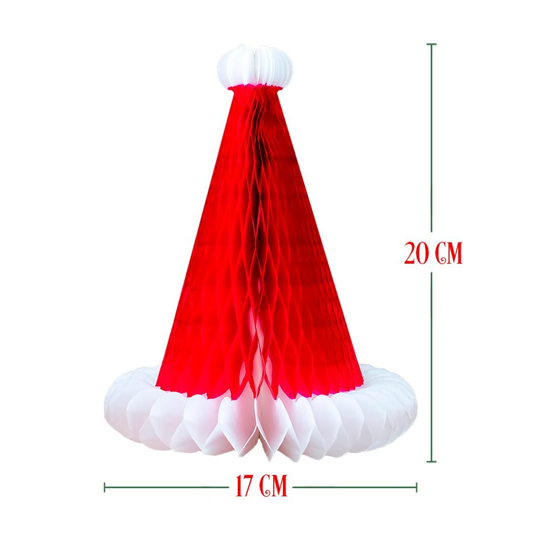 Este gorro navideño artesanal destaca por su estructura ligera de papel china tipo nido de abeja, que al desplegarse forma un volumen atractivo y festivo. Su combinación de rojo vibrante con detalles blancos lo convierte en un elemento clásico de la temporada. Es perfecto para decorar mesas, aparadores, repisas o cualquier ambiente navideño que busque un toque cálido y tradicional. Disponible en dos tamaños, permite crear composiciones armoniosas y visualmente llamativas.