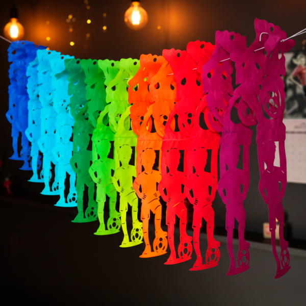 Cada pompón combina tiras de papel china y papel metálico que brillan y se mueven con cada gesto, creando un efecto visual vibrante y lleno de dinamismo. Son el complemento perfecto para animar, celebrar goles y contagiar entusiasmo en cualquier reunión o evento deportivo. Ideales para reuniones con amigos, bares, restaurantes o celebraciones temáticas, estos pompones convierten a cualquiera en parte de la fiesta. No solo decoran… activan el ambiente, elevan la emoción y hacen que cada momento se sienta más intenso.