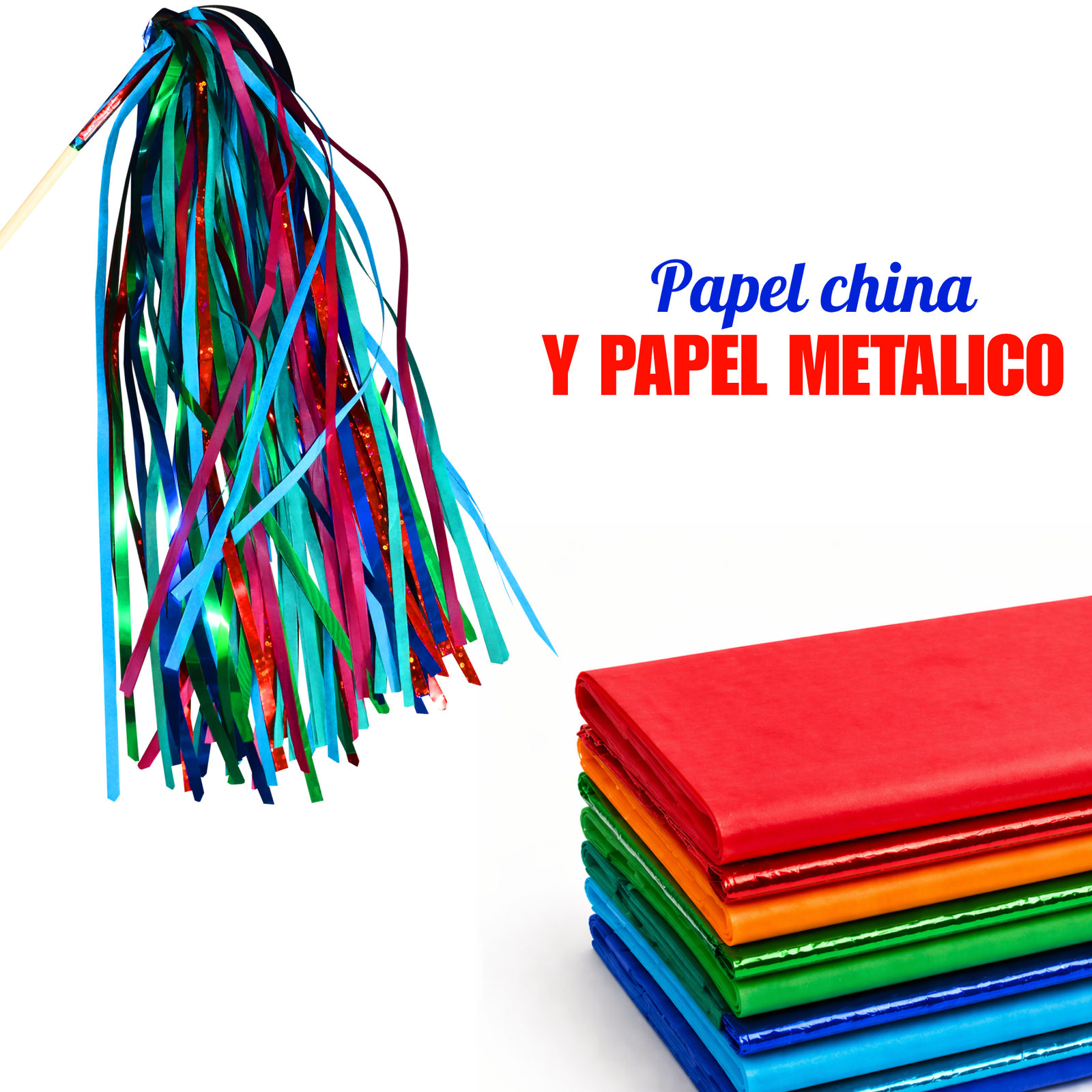 Material: Papel china, papel metálico y varilla de madera