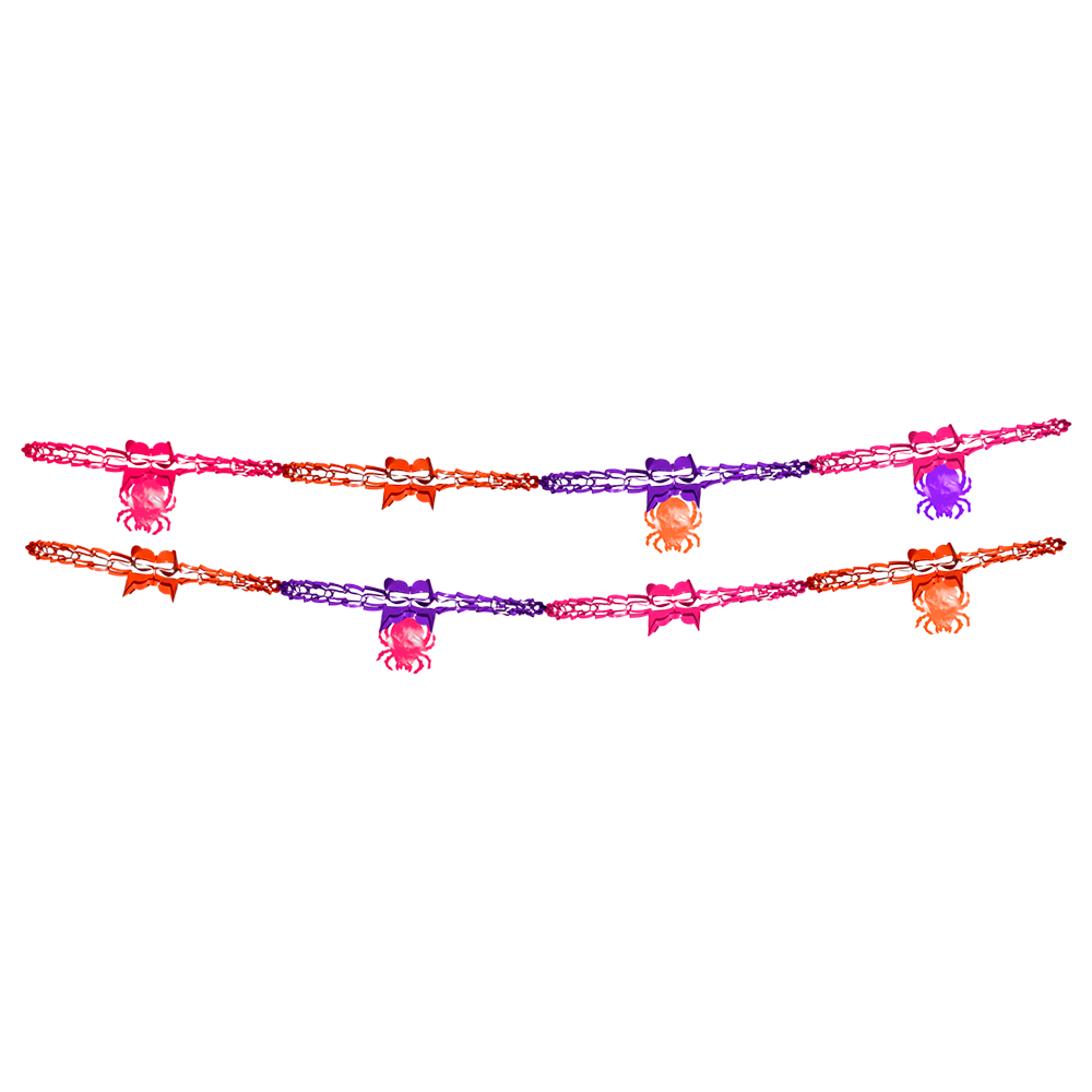 Paquete de 10 cadenas decorativas elaboradas en plástico, con colgantes de 6 diseños diferentes alusivos al Día de Muertos. Ideales para ambientar paredes, marcos, altares o entradas con un toque colorido, festivo y lleno de tradición.