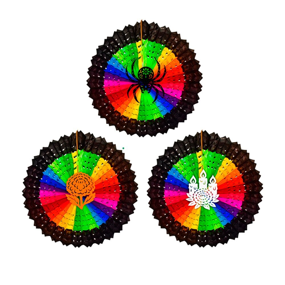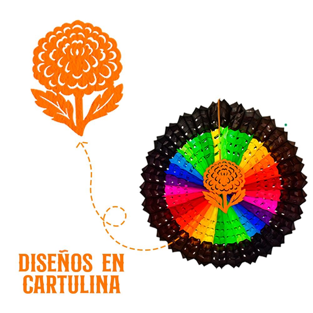 Kit con diez figuras plegables medianas en forma de telaraña, con tres diseños distintos: araña, vela y flor de cempasúchil. Elaboradas en papel china con técnica nido de abeja, son ideales para dar un toque colorido, original y festivo a tu altar o decoración de temporada.