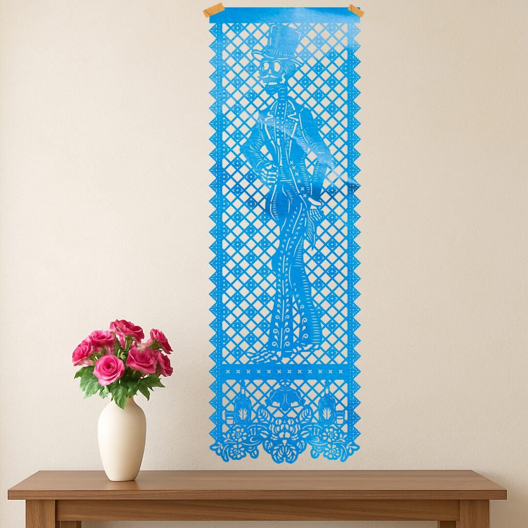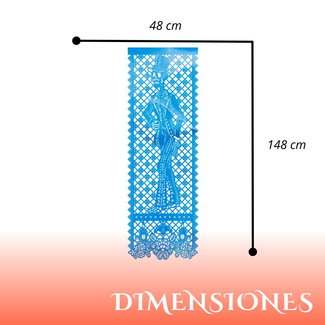 Resalta la decoración de tus celebraciones con este mantel artesanal grande de papel china, trabajado con un elegante diseño de “catrín”. Cada pieza está llena de detalles finos que lo hacen delicado, vistoso y perfecto para darle un toque especial a mesas, paredes o altares. Disponible en 2 colores, es una opción ideal para quienes buscan decoración artesanal auténtica y llamativa.