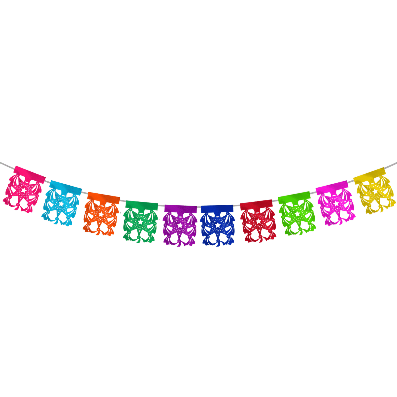 El papel picado en tira tamaño mediano 1/4 con diseño de piñata es una opción ideal para decorar espacios de forma alegre y tradicional.
