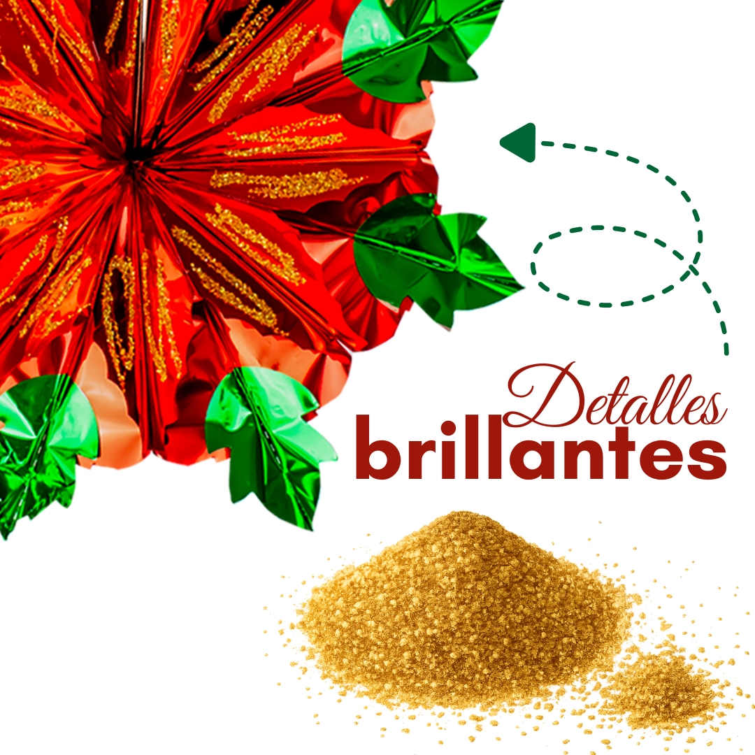 Pascua decorativa pequeña de papel metálico rojo con hojas verdes y diamantina dorada. Ligera, brillante y perfecta para decoración navideña.