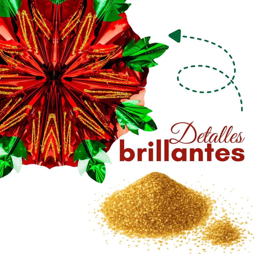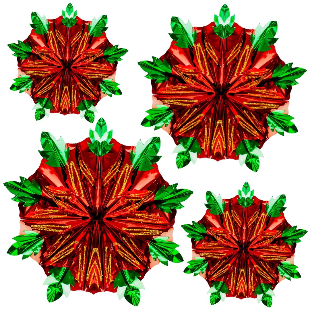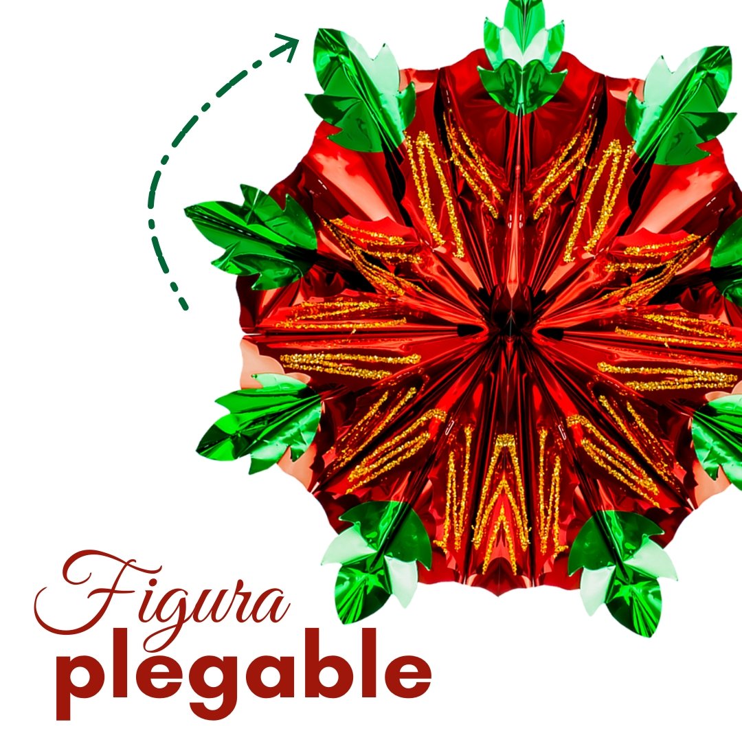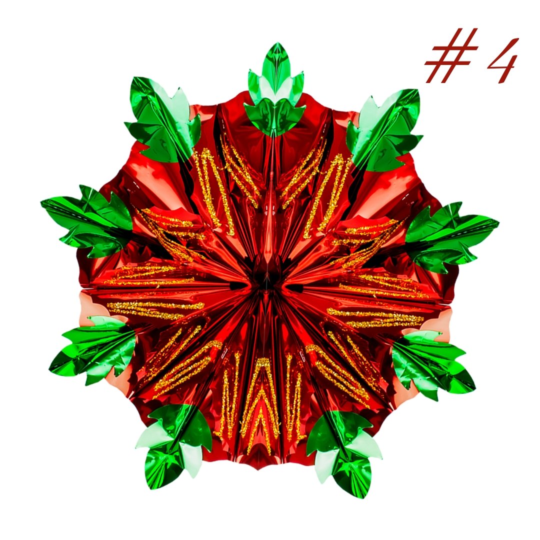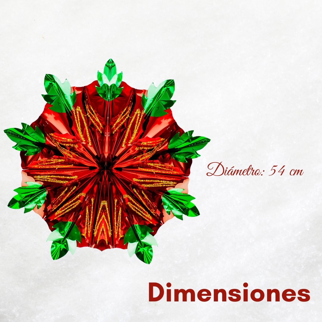 Pascua grande #4 de papel metálico rojo con hojas verdes y toques dorados. Brillante, vistosa y perfecta para una decoración navideña destacada.