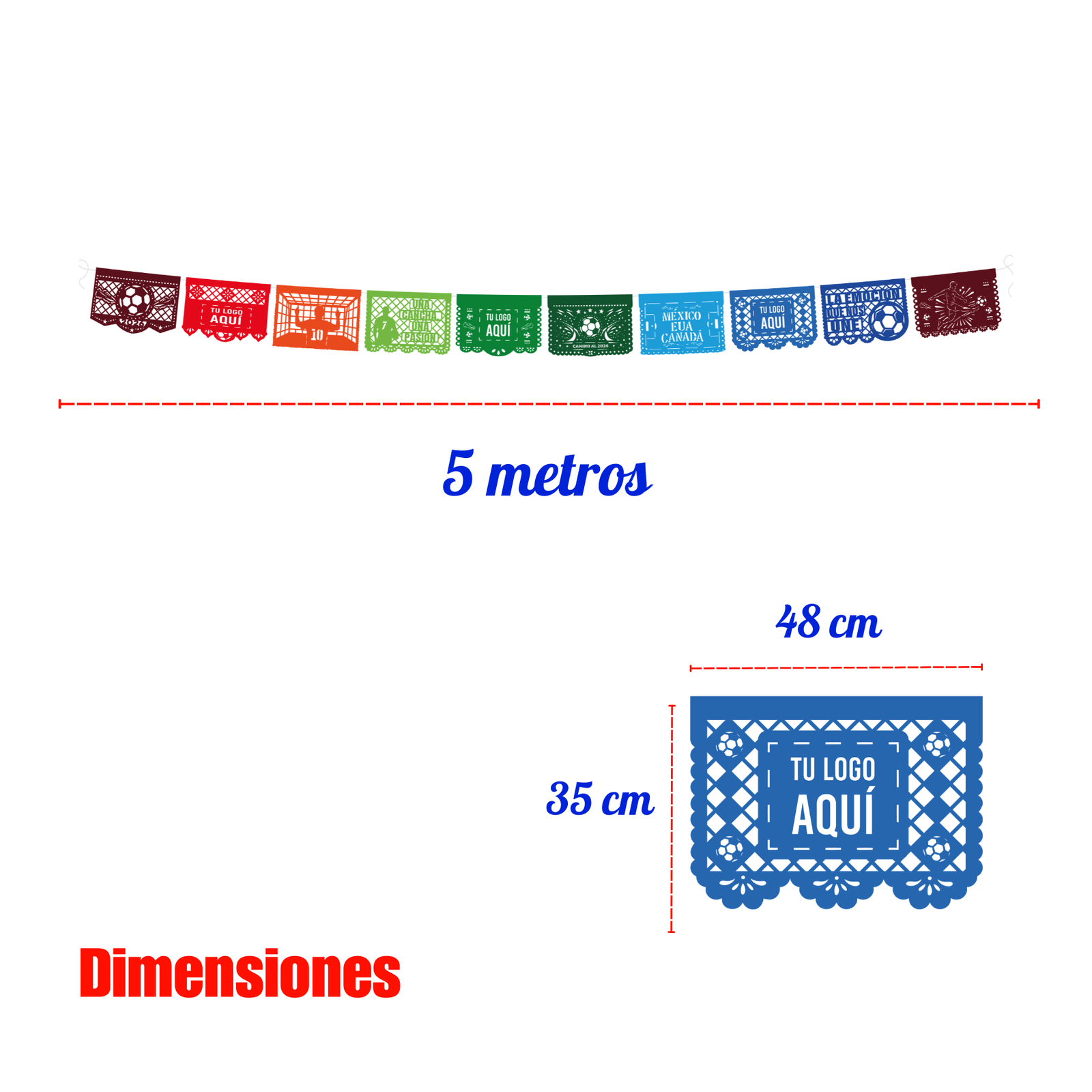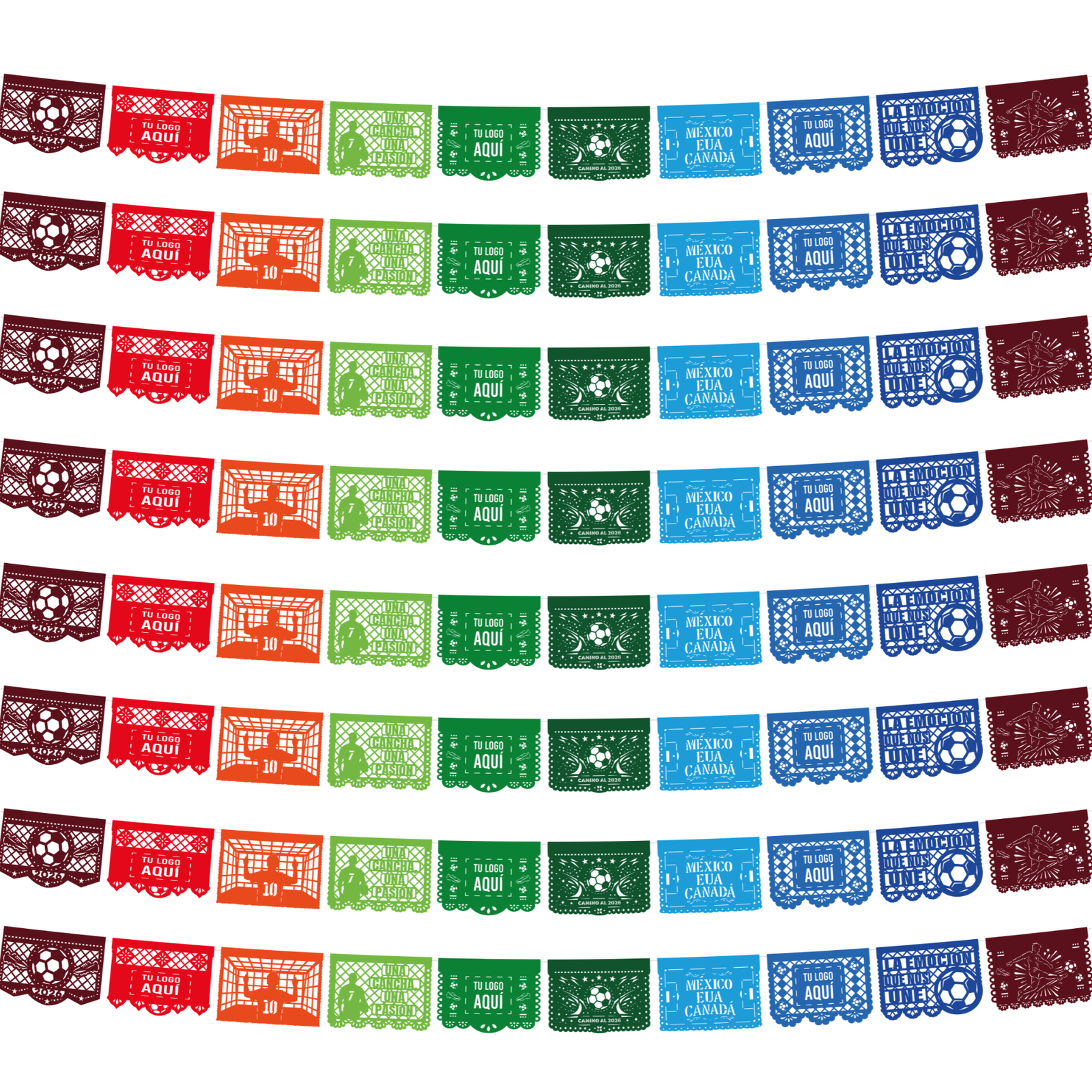 Papel picado de fútbol personalizable con espacio para tu logo. Ideal para eventos y activaciones de marca con estilo único. ¡Destaca tu marca, compra ahora!