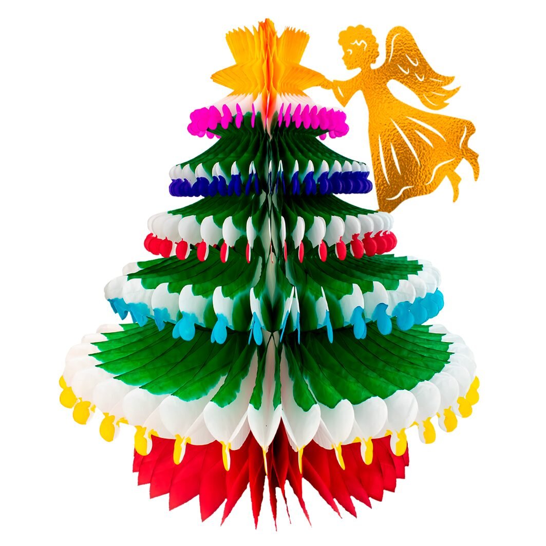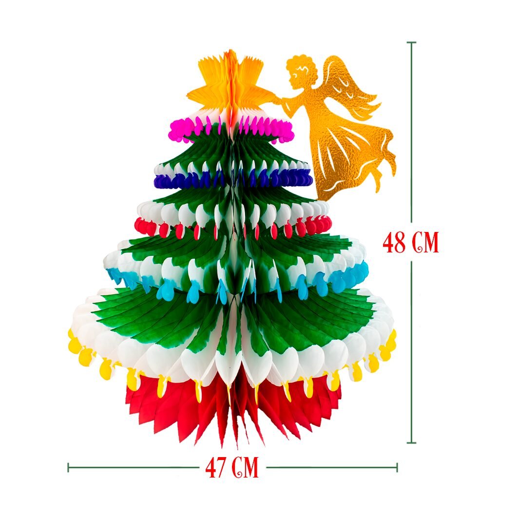 Decorativo y lleno de encanto, este pino navideño con ángel incorpora una base multicolor que aporta dinamismo visual y un diseño artesanal que evoca las celebraciones tradicionales. Su forma plegable permite montarlo fácilmente, convirtiéndolo en una opción práctica y atractiva para adornar distintos espacios. La figura del ángel que lo acompaña añade un detalle cálido y emotivo, ideal para darle personalidad navideña a cualquier ambiente.