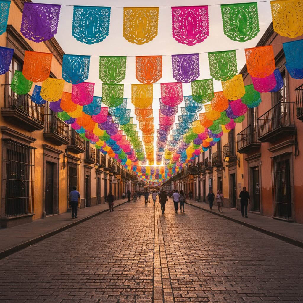 Celebra con color y devoción. Cada tira contiene diseños alusivos a la Virgen de Guadalupe en tonos vibrantes, ideales para decorar altares, calles, templos o espacios festivos. Perfectas para darle vida a las celebraciones guadalupanas.