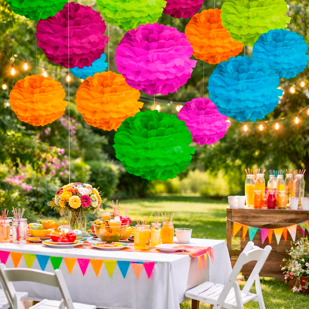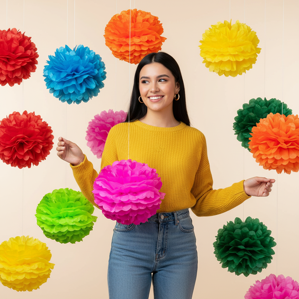 Decora con el Pompón Esfera 1 de papel, ideal para mesas y ambientaciones colgantes en celebraciones primaverales. Elige tu color favorito y crea un montaje lleno de estilo hoy mismo.