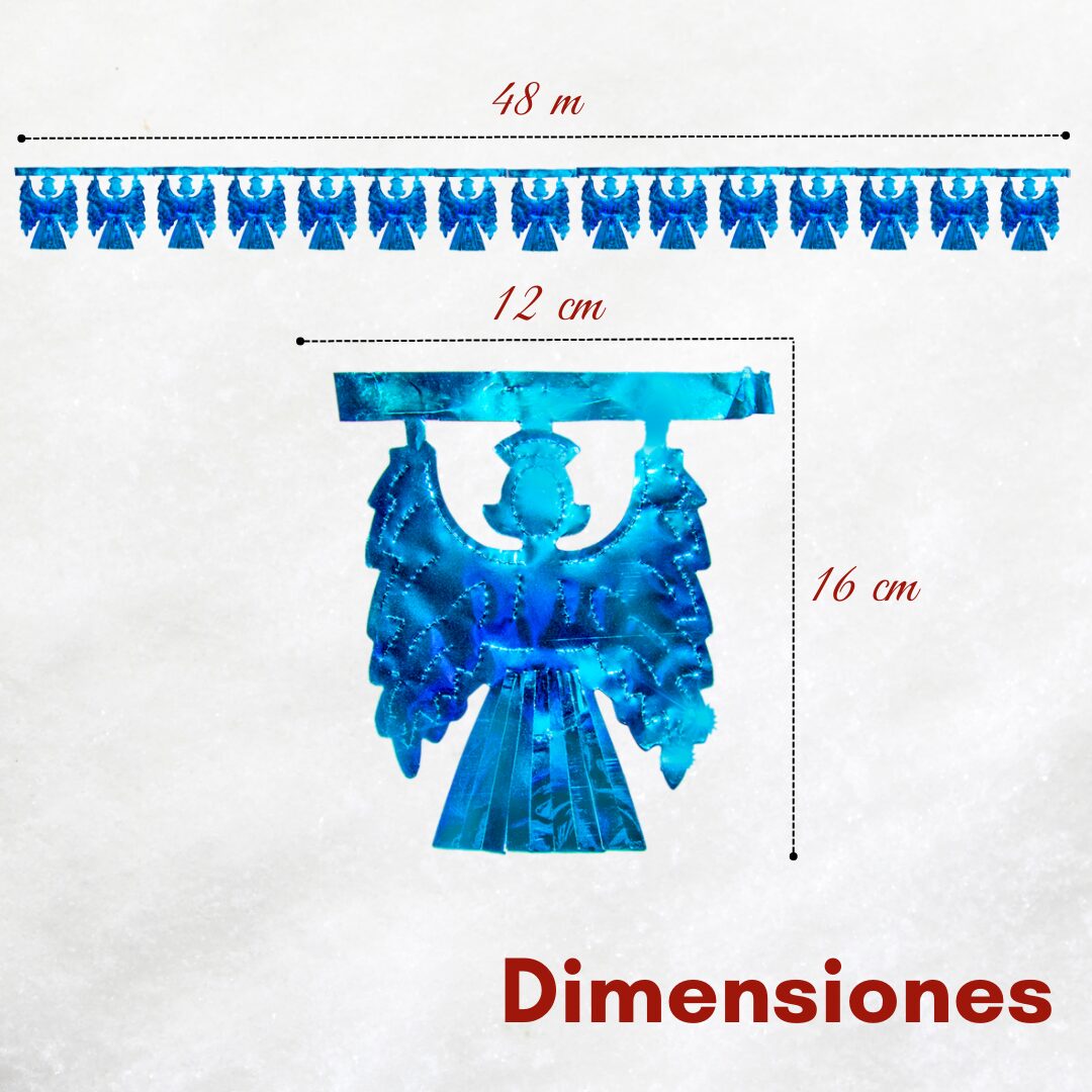 Nuestra Tira metálica 1 navideña “Angel” es una decoración brillante y ligera, ideal para darle un toque festivo a cualquier pared. Está hecha artesanalmente con papel metálico y cada tira incluye 15 figuras de ángeles que lucen increíbles con la luz. Mide 2 metros de largo, por lo que es perfecta para complementar espacios grandes o pequeños. Contamos con variedad de colores sujetos a disponibilidad, y su diseño plano la hace muy práctica para colocar y combinar con otras decoraciones.