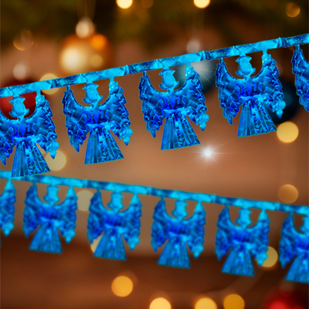 Tira metálica navideña con 15 ángeles. Brillante, ligera y perfecta para decorar paredes.