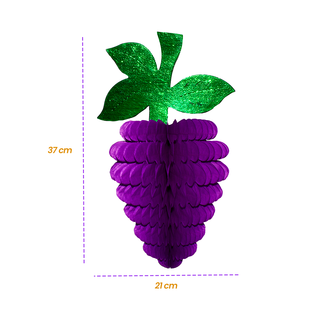 Uva decorativa de papel china, con efecto nido de abeja. Ideal para fiestas y ambientaciones temáticas. Agrégala a tu pedido y completa tu decoración.